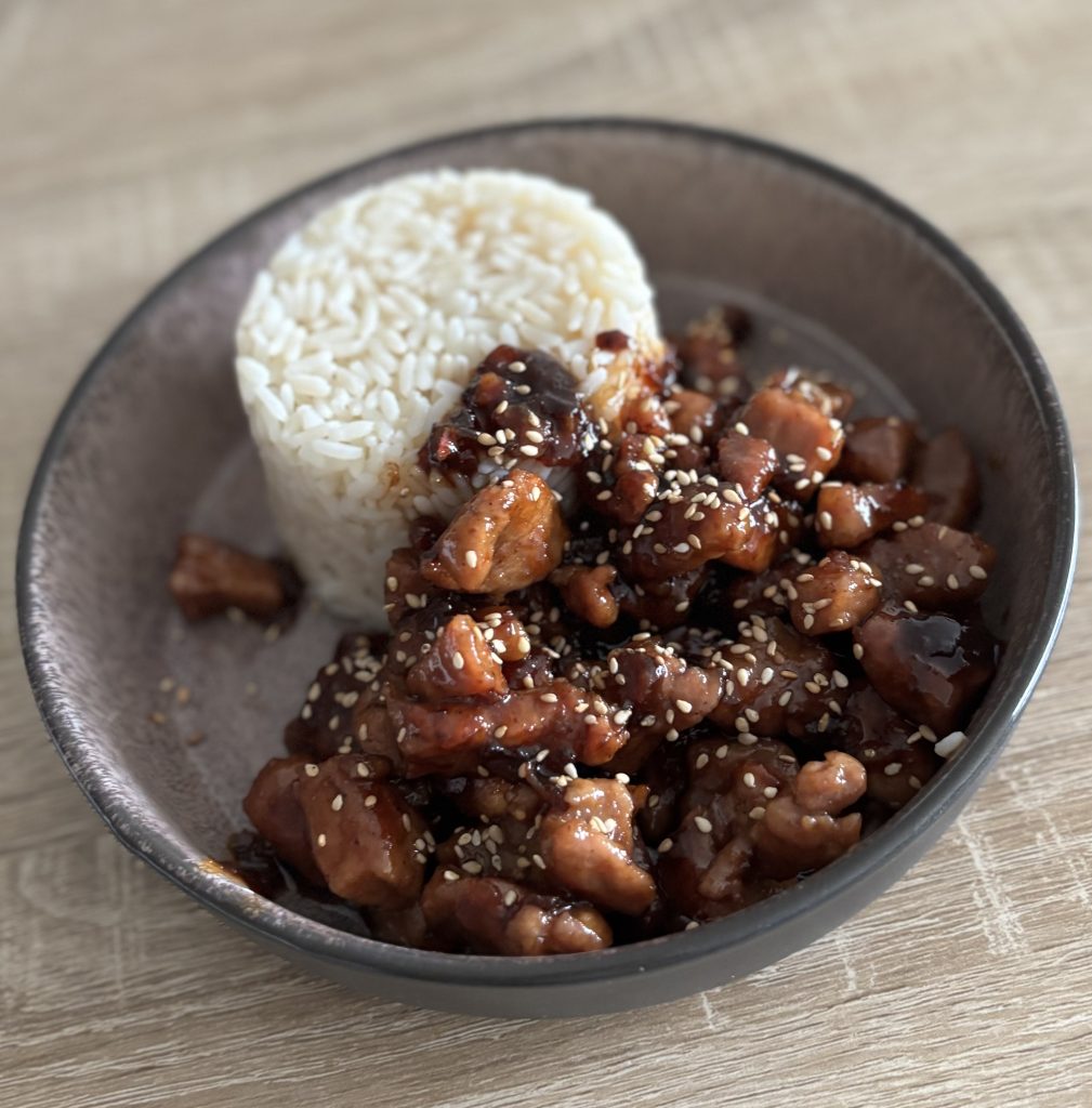 🍚 Il y a des soirs où j’ai juste envie d’un plat simple, généreux et plein de goût. Et dans ces moments-là, mon porc au caramel servi avec son riz thaï arrive toujours en tête. C’est le genre de recette qui embaume la cuisine en quelques minutes : le sucre qui fond, le porc qui dore, la sauce qui devient brillante et irrésistible… impossible de ne pas goûter avant la fin !